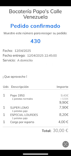 Le pongo dos estrellas, porque los bocadillos que nos llegaron estaban muy buenos, pero la atención es otro tema. Hicimos el pedido para que se nos entregase a las 22.45h, llegó a las 23.15h, tras haberle hecho una llamada preguntando por el pedido(ya que no nos llegó ni un mail de reparto) y nos comunicaron que no sabían dónde estaba el repartidor y que la cena la teníamos allí desde hace un rato, la persona que nos atendió en ese momento fue muy agradable y se disculpó, y si hubiese quedado ahí simplemente sería un error aceptable; el motivo de la mala reseña es porque en el momento de recibir el pedido nos faltaban dos raciones de patatas y volvimos a llamar, y nos indicaron que no las habíamos pedido, pero en el ticket (como adjunto) sí estaban indicadas, en todo momento la nueva trabajadora que nos atendió (sabiendo que ya habíamos tenido un problema) nos hizo referencia a que no lo habíamos añadido y al referenciar el ticket, nos dijo que era error de web pero que al no ver un coste adicional deberíamos saber que no estaban incluido, cuando podría estar incluido en el coste total como sucede en otros locales, no tenemos que saber si viene con acompañamiento incluido o no, ya que somos clientes no trabajadores del local y la actitud de la persona nos dio a entender que era un error reiterado, y al pedir una solución nos dijo que tendríamos que hacer un nuevo pedido pagando dichas patatas y el coste del envío, de nuevo; todo esto con una actitud un tanto prepotente y sin dar soluciones ni pedir disculpas, y otro punto es que en nuestro caso pagamos en efectivo pero no se nos indicó en ningún momento si habría posibilidad de hacer el pago por TPV, cosa que me parecería importante de indicar. La verdad que quedamos muy descontentas porque hicimos el pedido a través de su web oficial porque entendimos que era un beneficio favor para ellos, en vez de usar una externa, y nos encontramos con las complicaciones, lo que hará que por lo menos, a domicilio no...