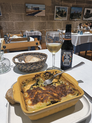 It was a quiet Thursday evening, and although I dined alone, the atmosphere was great. Typical Galician music was playing in the background, lovely paintings of the area hang on one wall, beautifully set tables with cloth napkins, fresh vegetables on show in the kitchen window (of which you see disappearing as the orders enter the kitchen 😉) and Eduardo the kind waiter who was very helpful made the evening special. I was really happy when the lasagna I ordered was amazingly delicious. A must visit in Vigo when you are a vegetarian or just...