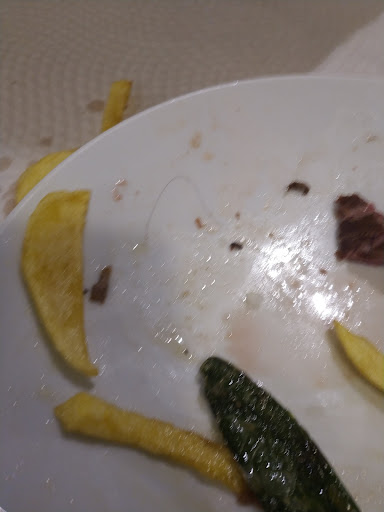 Read moreVolvimos pensando que reviviriamos la experiencia anterior pero es otro lugar al que no volver. Pedimos calamares a la andaluza, vino de la casa y solomillos. No quería poner una mala reseña porque había cenado con mi pareja anteriormente y habíamos quedado bastante satisfechos pero creo que fue por el embrujo de la compañía y el momento porque hoy cuando pedimos calamares a la andaluza nos trajeron la arena de la orilla del Guadalquivir dentro de bastantes de esas anillas que intente pasar por alto hasta que en una nos encontramos un pelo que con bastante discreción comenté con el camarero, el cual me contestó que era del sitio de procesado ya que ellos jamás habían visto eso, incluso que la gente de dentro ni siquiera tenía ese color de pelo, le faltó asegurarme que todos eran calvos. El vino parecía de mesa y los solomillos estaban muy ricos pero en el plato de mi pareja apareció otro pelo. A partir de ahí ya me puse en modo crítico y como anteriormente no hice una foto del pelo del calamar por el romanticismo que me inspiraba este local , si la hice del pelo en el plato de mi pareja ya que cuando se lo volví a comentar, de manera demasiado respetuosa, me contestó que eso no lo había visto en la vida como dando a entender que nosotros éramos los que habíamos puesto esos pelos en la comida. Aporto foto. .50€ de los cuales solo pagaría 30€ de los solomillos....