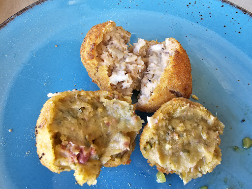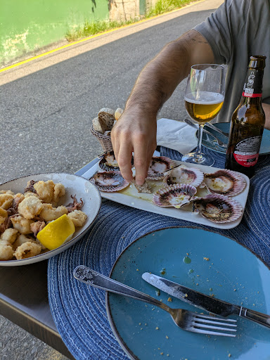 Read morePequeña y acogedora tapería situada cerca de la playa del Vao en Vigo. Terracita con una acogedora sombra que ofrece el toldo del bar y en la cual degustamos junto a una estrella de Galicia y una cocacola zero unas deliciosas croquetas caseras de pulpo y otras de zorza, empanada de berberechos, una ración enorme de pimientos del padrón y otra de chipirones fritos(que ellos llaman calamares)enorme también. El pan muy rico también de trigo y centeno. Todo delicioso, muy buen trato y muy rápidos. Las tapas en relación calidad, cantidad y precio, baratas. También señalar que fuimos un poco a la aventura, porque nos presentamos en la tapería sin reserva, pero en esta ocasión no hubo ningún problema. No sabría decir si es necesario reservar para futuras ocasiones. La próxima vez que visite esta playa tan bonita me gustaría...
