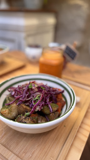 WARNING Do not try to take a video or the owner will go balastic, some excuse about he doesn't want the competition to find out. What does he need to hide !! Having said that his shop/supermarket is a welcome addition to the City of Vigo. A shop with a great variety of organic products including a range of local Galician produce including for vegans. A cafe style eatery with seating areas inside and a nice garden style terraced area. A wide and ever changing menu serving fresh,quality organic food. The "Platos del Dia" I tried were all delicuous and reasonably priced served with a wide choice from the drinks menu. And the desserts are outstanding.The Cestoni and carrot cakes are really memorable- amazing recipes ! His team are helpful,patient...