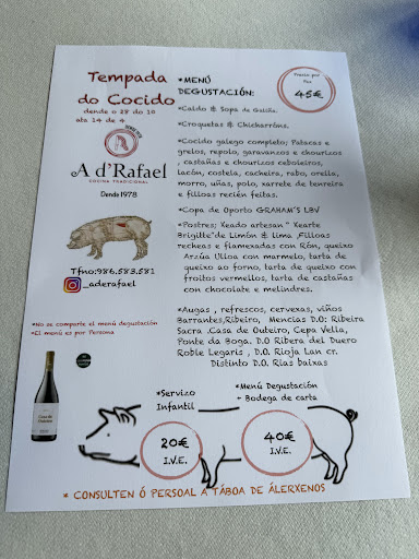 Read moreVeníamos de estar en estaca de bares y el día invitaba a comer un buen cocido. Maps nos recomendó este sitio así que allá fuimos. Llegamos y nos pregintaron si teníamos reserva y dijimos que no así que dijeron que esperaremos un poco nos llevaron a una mesa de cafetería por que el comedor entre las reservas y la gente que estaba comiendo no había sitio. Al final hubo una cancelación y pasamos al comedor amplio y con unas buenas vistas a un puente de piedra y un río Nos dieron la carta (degustación de cocido) y yo pensé que podíamos elegir cada uno de los platos pero no !te lo traen todo!. La ración de cocido un poquito corta pero lo compensa con creces el conjunto. Como anécdotas de la comida que mi pareja pidió una copa de vino de barrantes llegó la camarera abrió la botella le sirvió una copa y dejó la botella Después en los postres había uno que era membrillo con queso pensamos que sería un trozo de cada cosa pero no trajeron una tabla con casi una bola de queso y un bloque de membrillo casero. Mi recomendación es que si vais a comer allí llamar antes para reservar y...