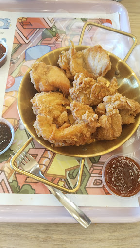 Read morePor dónde empezar?? Que desastre, desde el servicio a la comida. Te tienes que levantar a pedir al mostrador, el personal parce tener horchata en las venas o muy poco experiencia en el sector y no tienen baños, tienes que ir a la planta baja del centro comercial si te estás meando. Parce que tampoco tienen cubiertos, ya que te dan guantes de plástico para comer el pollo No se puede llamar ramen al paquetito de pasta seca con sobres de sabor que venden en cualquier supermercado por menos de un euro y aquí te lo venden por 10€ El pollo estaba seco y muy poco generoso. Resumiendo, no vale la pena perder el tiempo y el dinero probando. Que puedes esperar de un restaurante Koreano que tiene polllo frito, hamburguesas, ramen, etc Parece un bazar chino de la comida. En Salou tenemos muchísimos buenos restaurantes, solo dedícale algo de tiempo a Google maps y encontrarás muchísima variedad gastronómica de muy buena calidad. Espero que no estén mucho tiempo y algún buen restaurante se quede...