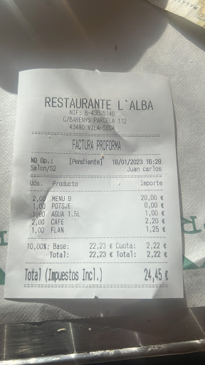 Read moreExcelente opción para comer correcto y rápido en el polígono de Vila-seca. El restaurante Alba destaca por su servicio ágil y amable, ideal para quienes van con el tiempo justo pero no quieren renunciar a una buena comida. Los bocadillos con buena variedad de ingredientes frescos y bien preparados. Especial mención al de vegetal de pollo, sencillo pero delicioso. Sin duda, un sitio muy recomendable...