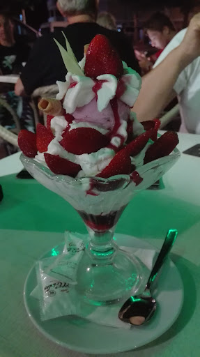 Read moreBueno que decir , el camarero profesional y trabajador pero........la mujer de detrás de la barra mis simpatía(no apta para cara al publico, los helados no respetando las alergias(cosa importante por temas de salud y alergenos) , puedes pedir un helado de nata y que te toque un helado de kitkat.Sorbete de limón tiene tropezones de que serán?, no lo sabemos y lo que si sabemos que es aconsejado para cuando te van hacer pruebas que necesitas una buena lavativa o con problemas de estreñimiento muy severos. Tema de higiene en cuando a los servicios........aconsejable para que, hagan un buen programa de que no hacer. La verdad los dos camareros atentos y no paraban de mantener las mesas limpias y el suelo , pero el trabajo si se repartiera subiría...