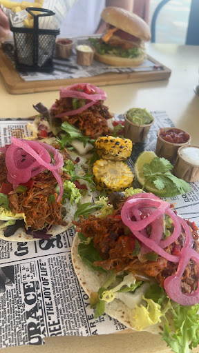 Read moreSoy intolerante al gluten y a la lactosa, por lo que al ver su publicidad de gluten free, junto con los comentarios de Google, decidí que sería uno de los mejores sitios para poder cenar en La Pineda. Al llegar allí le digo a la chica que nos atiende que soy intolerante al gluten y a la lactosa. Le pregunto sobre los tacos y las pizzas y me dice que tiene que preguntar sobre sus ingredientes. Pedimos para compartir tacos y pizza barbacoa, y le vuelvo a repetir que se asegure por favor que no llevan ninguno de los dos ingredientes. Pregunta en la cocina y me dice que el queso de la pizza tiene que ser vegano para no llevar lactosa. Doy el visto bueno y se va. Lo primero que nos sirven son los tacos. Comenzamos a comer. Tras habernos comido un taco cada uno, miro otra mesa y veo que otras mesas tienen el cartel de gluten free y la mía no. Dejo de comer y llamo a la camarera. Le pregunto si los tacos llevan gluten y me dice que si. Le digo que eran sin gluten. Me pone mala cara y me dice que bueno, que entonces me trae un taco sin gluten. Le digo que el problema es que ya me he comido uno. Y continúa diciendo que me trae uno o dos más, pero sin pedir ni siquiera disculpas por el error. Finalmente nos traen otra reacción entera de tacos sin gluten. Termino de cenar bastante a disgusto, sabiendo lo que me espera después y esperando que no se hayan confundido en nada más. Al ir a pagar el propietario nos pregunta sobre lo ocurrido. Nos pide disculpas y nos explica que la chica no es una camarera habitual del establecimiento, por lo que aún no está acostumbrada a los protocolos que siguen allí. Nos descuenta el precio de la botella del agua por las molestias. Más de 24 h después continúo mala de la tripa, habiéndome fastidiado mi último día de vacaciones. Soy consciente de que somos personas y nos podemos equivocar. Pero este tipo de errores son muy graves, ya que juegan con la salud de los clientes. Para mi suerte, "solo" son molestias gastrointestinales, si hubiese sido una alergía... Doy dos estrellas y no una por la amabilidad del propietario, pero yo no volveré a éste...