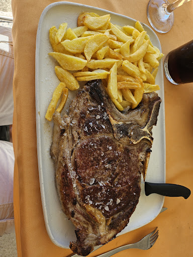 Read moreRestaurante con buenas vistas y con un espacio enorme, lo que implica bastante ruído cuando se llena (lo que para mí resulta molesto). Pedimos pulpo a feira, calamares, tortilla, huevos con patatas fritas y arroz de la casa. No me quedé impresionado con ninguno de los platos, más bien lo contrario: el pulpo estando bien de textura, no tenía ningun sabor al producto, solo se notaba el aceite, la sal y el pimentón; la tortilla podria estar buena, pero la dejaron pasar demasiado por uno de los lados y sabia al tipico quemado; los calamares no parecían malos, pero tenían un color amarillo radioactivo, lo cual intuyo que lo que tenía en el rebozado era harina y colorante...; los huevos fritos con patatas fritas para los niños bien, pero bueno, es lo que es, si eso estuviera malo....; el arroz de la casa tiene muchas pretensiones por lo que lleva, pero de sabor no tenía mucho la verdad (como positivo tenía 4 o 5 trozos de rape generosos, lo cual está bien). Es local es economico, pero bajo mi criterio y teniendo em cuenta lo que comi, no me ha gustado y por enconomico que sea, no creo que merezca la pena. Por esto, aguas, 2 cervezas, 1 postre de tarta helada y el...