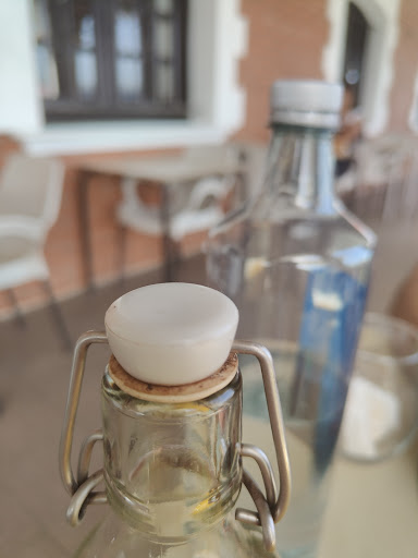 Pero el principal problema, creo, es la higiene, y adjunto una fotografía para que se entienda. El tapón de la botella de vino estaba cubierto de suciedad. Y las cartas, igual. No cuesta nada darle un agua...