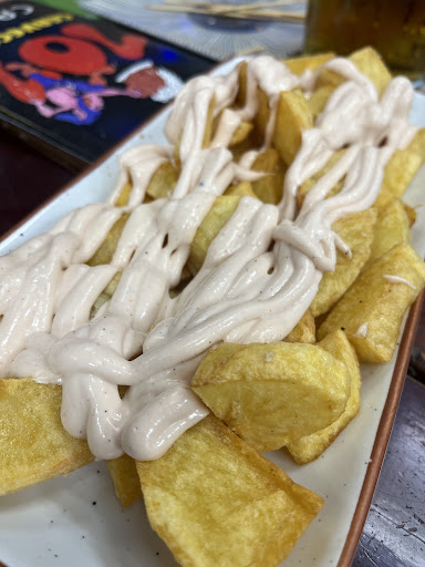 Read moreFuimos un grupito a comer de picoteo y otros de menú, el caso fue que desde el primer momento el camarero fue muy antipático y déspota, aparte de que lo llamabas y tardaba la vida en venir y lo veas tranquilamente hablando con los amigos de risas, después tuvimos que esperar bastante rato entre unos platos y otros, íbamos a seguir pidiendo pero por la actitud del camarero que nos atendió sin ganas y la lentitud lo dejamos como estaba, para rematar tardo 15 minutos en traer la cuenta. Pedimos patatas fritas con salsa brava (que sin más) las croquetas y los huevos rotos estaban muy buenos y los calamares a la rumana no nos gustaron, tenían buena pinta, pero el sabor no...
