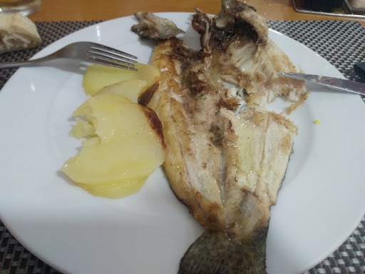 Comida normal tirando a salir del paso. Menú diario 10,30€, menú infantil 8,50€ (1 plato combinado carne y patatas o macarrones con bebida y postre) Añado foto de paella de marisco: Arroz poco gustoso tirando a seco, pero se deja comer con un buen chorro de limón. (Mi plato tenía sensiblemente menos arroz que el de otros comensales de otras mesas, seguramente debido a que los otros eran clientes habituales o conocidos) Añado trucha a la plancha, está bien aunque para mi gusto le faltaría un punto de especias + 4 trozos de patatas cocidas. (A lo pobre, numéricamente hablando). Conclusión, si estás en medio de Viladecans, tienes hambre y no puedes irte más lejos, por 10€ acabas sobreviviendo. Local positivamente grande y cómodo, el espacio entre mesas es el adecuado, lamentablemente el climatizador es insuficiente para dar una temperatura de confort a todo el local, recomiendo ponerse cerca...