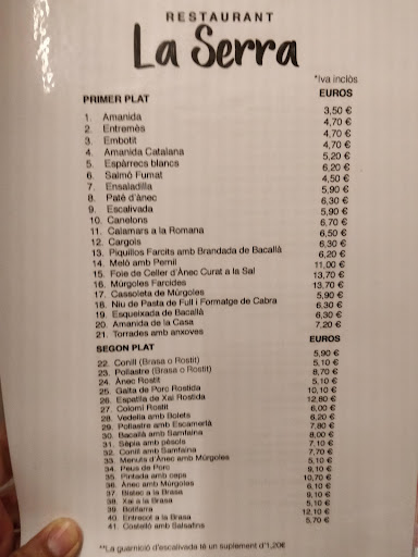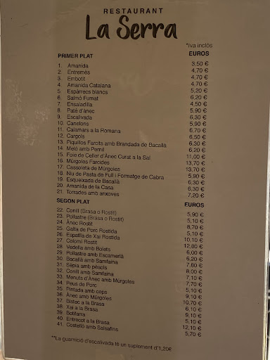 Hoy hemos venido a celebrar el día de Sant Esteve con toda la familia al Restaurant La Serra de Sant Esteve de Guialbes. Menos mal que habíamos reservado, por qué estaba que no cabía una aguja. Ya habíamos decidido un menú de grupo que tienen con picapica y segundo y postre a elegir de la carta. Se trata de una masia catalana reformada con diversas salas comedor, mantelería a cuadros y ese aire rústico y acogedor. Tienen un pequeño parque infantil que viene genial si vas con niños, y por la zona hay parquing de sobra cómo para no preocuparse. La comida está muy rica, se nota que todo es casero y el producto de cercanía y calidad. El servicio muy correcto teniendo en cuenta que los pobres iban saturados de faena. Me ha limitado subir la puntuación el tempo de sacar los platos, ya que no había espacio en la mesa y seguían llegando platos a compartir, en algún momento fue estresante tener de engullir a ese ritmo, supongo que para remontar la mesa y seguir el servicio. Me sorprendieron mucho los pimientos rellenos y el bescuit con chocolate caliente. Estoy convencido que cuando vuelva le subiré la nota, ya que no es la primera vez que voy y siempre salgo muy satisfecho, ya que la relación calidad precio...