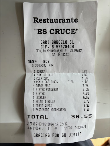 Read moreEs Cruce restaurant in Palma de Mallorca offers a decent dining experience with its hearty portions and affordable prices. During our visit, we found the food to be okay, but nothing particularly outstanding or memorable.