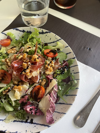 We wandered by this place at midday and it was super busy so we decided to try it. They have a €14 menu del dia. We started with the rocket salad with salmon and pineapple and cherry tomatoes, pepitas, sunflower seeds, and raisins and the pesto pasta with sundried tomatoes, olives, walnuts, and rocket. For our second courses we had the bacalao and the ham with cheese escalope. Then we both had cheese cake with raspberry sauce for dessert. Everything was delicious and such an...