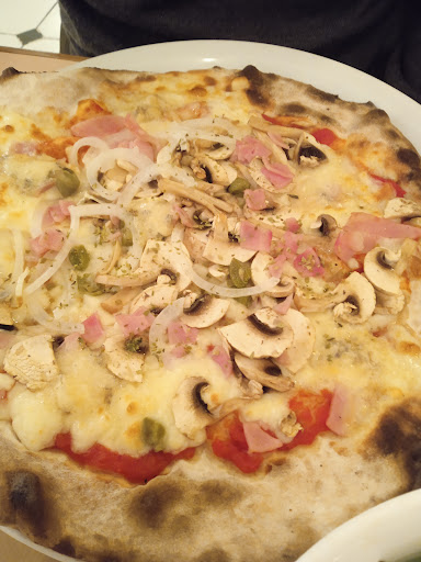 Read moreUn lugar acogedor, se nota la estructura de una casa típica de la zona, con su baldosas tan particulares. Un estilo muy chic que hace entrañable la estancia. El baño puede ser demasiado retro pero da que hablar con el acompañante. Las pizzas están buenísimas, se nota el horno de leña, de masa fina y crujiente, no hay exceso de aceite ni salsa, todo en su medida. Nos faltó ingredientes más selectivos o especiales, pero la calidad de los ofrecidos es muy buena. El postre, en nuestro caso tiramisu, no falló. Tampoco el mejor, prefiero descartar la nata en este tipo de postre y abarcar solo con mascarpone. El personal muy atento y cuidadosos con nuestra visita, no agobian y dan esa sensación de que te están por ti en todo momento, un ambiente...