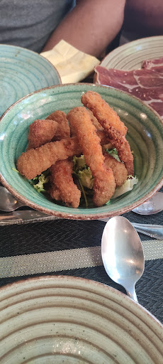 Read moreFrancamente me espera mucho más . Mire las reseñas y las publicaciones de sus redes sociales y me pareció un buen lugar para cenar con mi pareja , pero fue un chasco,. Pedimos platos para compartir , primero dos croquetas y una tabla de embutidos y de segundo pulpo con parmentier de patata . Nos trajeron las dos croquetas y al rato el pulpo , cosa que no entendí ya que era el segundo , después nos traen la tabla de embutidos que insisto ponía ibéricos y de eso tenían bien poco , mucho salchichón y chorizo malillo , algo de lomo normal y queso que he de decir que si estaba realmente bueno . Pedimos pan ya que la tabla no llevaba y madre mía , para dos personas nos trajeron pan para medio pueblo , tostado con soplete 😱 con tomate y un montón de pimienta negra , cosa que tampoco entendí . Y caro. En fin sintiéndolo mucho no...