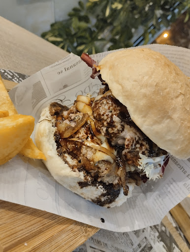 Read moreTodavía no he salido del sitio y ya quiero poner la reseña para no dejar nada en el tintero. Somos de Coruña, y de casualidad acabamos aquí cenando porque es domingo y había pocas cosas abiertas. Bendito destino, hacia tiempo que no probaba una burguer tan rica y original, honestamente. La que sale en la foto es la hamburguesa Meclum doble. La recomiendo muchísimo, la salsa es un espectáculo (mezcla de reducción de oporto y caldo de carne, agridulce , ligeramente melosa y muy potente de sabor sin ser invasiva). Se nota que el blend de carne está hecho aquí, y puedes elegir el punto de la hamburguesa y lo clavan. Servicio rápido, atento y muy amable. Me he comido muchas burguers en la vida y honestamente enhorabuena al equipo que lleva este local. Rotundamente recomendable, volvere seguro. Hablaré de este sitio bastante a mis conocidos. Si buscas una buena hamburguesa, a un precio que para el nivel es un auténtico...