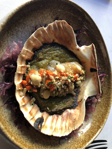 1 . Pan con Mantequilla (Vajilla del pan de Lorenzo (Estudiosangiovanni *Top) muy rico todo. Dos variedades de pan, exquisitas. Puerritos Baby a la brasa con Romesco (Reinterpretación de los calçots) a lo Gallego un 10 , Muy Ricos . Bonito del Norte a la brasa, guacamole y pico de gallo (Crudo), muy jugoso y rico. Un 8 Chipirones de Anzuelo a la Brasa, que los pedimos encima de una base de arroz negro, Ricos, aunque muy caro la ración y cantidad. (En Betanzos, en Restaurante San Andres el triple de todo tanto de arroz como de Chipirones de anzuelo hasta la fecha los mejores que probamos, mas baratos que aquí, solo los tienen en Temporada). Le darían un 6, porque nos tocaron 2 por persona.