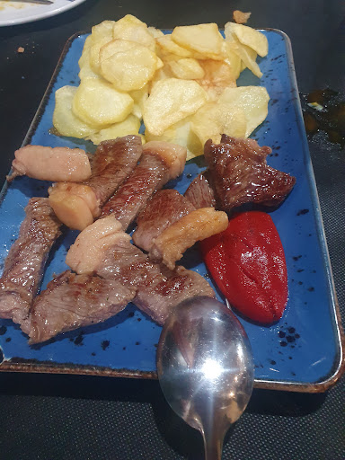 Read moreHemos comido el menú casero del día y estaba muy bueno. Mi primero ha sido ensaladilla rusa y me ha sorprendido gratamente, ya que en la mayoría estás comiendo básicamente patata con mayonesa y el atún suele brillar por su ausencia, pero este no ha sido el caso. Mi pareja, pidió de primero garbanzos con chorizo y tenian un sabor potente y buenísimo también. De segundo he comido brochetas de pollo (ponen dos), acompañadas de patatas panaderas recién hechas y mi pareja estofado, cuya carne estaba bien tierna y las patatas bien impregnadas de su caldo. De postre, como había que elegir entre postre o café...hemos tomado un trozo de torta de Santiago y un cortado. Agua y pan de pueblo buenísimo también. Ah..., íbamos con nuestra perrita y como en la terraza hacia frío y hacia mal tiempo...nos pusieron dentro en una esquinita, así que más no podíamos pedir. Lo encontramos de casualidad, porque íbamos a Pontevedra. Nos costó...
