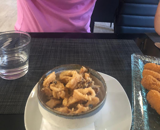 Read moreLas croquetas congeladas, aunque las de gamba tenían un pase. Los calamares congelados, pequeños, harinosos y la ración te la sirven en un bol de desayuno. La entraña de sabor bien, pero te la trocean y esparcen por el plato con unas patatas y dos trozos de pimiento para que parezca que hay más. Los precios no acompañan ni de lejos ni la calidad, ni la cantidad ni...