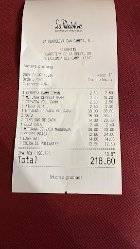 Read moreEs la segunda vez que venimos a este restaurante porque decidimos darle una segunda oportunidad . La primera vez que venimos fue antes de la pandemia del COVID y queríamos hacer el menú montolivada , nuestra sorpresa fue cuando la camarera nos dijo que era obligatorio que todos los comensales de la mesa teníamos que pedir dicho menú y dos de ellos por problemas de salud no podían comer embutido y pidieron plato de carta cobrando el precio como si hubieran comido el menú montolivada. Hablamos con la jefa y nos dijo que era norma del restaurante pero no vino reflejada dicha norma en la carta . Ese día marchamos descontentos del restaurante pero hoy día 24 de junio hemos decidido volver pero pidiendo platos de carta . A la hora de pedir la comida a los peques lo primero que dicen es que no se puede compartir menú que tampoco lo pone en ningún sitio. Hasta aquí tiene un pase pero ahora viene una larga lista de decepciones que nos hacen plantearnos no volver más : 1/ patatas duras , poco hechas y para ser un restaurante de cocina tradicional y casera ponéis unas patatas congeladas y duras que no nos las podíamos ni comer , cuando le comento a la camarera me dice que ahora lo comentará en cocina, no recibo ninguna respuesta. 2/ Al pedir el pan te cuentan las rebanadas y solo hacen que recordarte lo que vale cada ración de pan . 3/ El plato de cabrito rebozado muy escaso , te quedas con mucha hambre por el precio de 22 euros. En fin , hemos tenido todos una sensación de que te van recordando los precios de todo cuando tienes ganas de disfrutar por la calidad de los productos y no por el precio . Somos clientes que no nos importa la cantidad de dinero que nos dejemos en la comida pero si exigimos una calidad-precio . No puede ser que pongáis precios por todo , hasta el aire que respiras , hacéis sentir fatal y encima te quedas con hambre y mal . Creo que no somos los únicos descontentos ya que un día festivo como hoy teníais un salón cerrado , es decir es para plantearse el trato a los clientes. Es una crítica constructiva que espero que os sirva para mejorar y poder ofrecer un mejor producto a futuros clientes sin tantas...