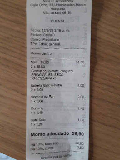 Read moreGracias por su respuesta a la crítica, pensaba que constructiva...el resumen de su contestación. "Nosotros lo hacemos todo bien y usted es mala gente" solo decirle , muy señor mío que no era mi intención ni mucho menos la de ofenderle que de 9 reseñas que he escrito en este medio todas menos la suya son positivas y que puede también hablar con el señor camarero y la chica de caja, muy amable por cierto, para conocer de primera mano si es cierto si algo de razón tengo y también sepa usted que aquí, con estas palabras termina esta conversación, no le pienso ya contestar ninguna de sus malas respuestas. Saludos y suerte de corazón, deseando lo más difícil que hay , aceptar que nos equivocamos y con ese poder intentar mejorar....lo dicho suerte.
