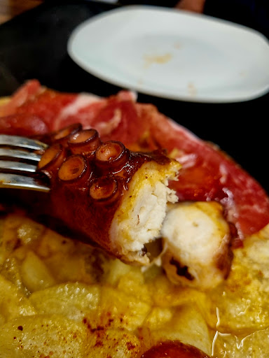La variedad de tapas que ofrecen es impresionante, y los platos son de calidad excepcional. Sin duda, los más destacados de la noche fueron las berenjenas con queso de cabra y miel, el pulpo con jamón ibérico, el abanico ibérico y las flores de alcachofa. Todo estaba delicioso y perfectamente presentado.