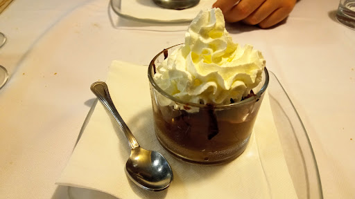 Pel que fa als postres, són fets de la casa. Vam escollir el mousse de xocolata, que acaben amb una mica de nata. El gust a xocolata era intens i estava ben fet.