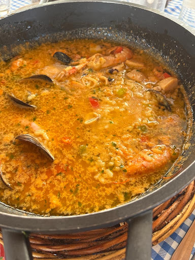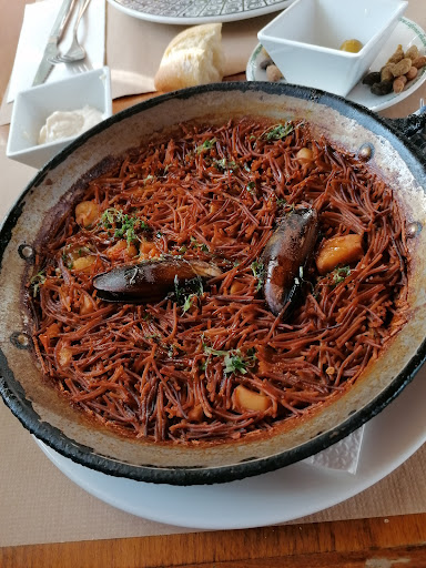 Read moreNo recomiendo acudir a este restaurante los festivos y fines de semana. No sé si es falta de personal, o lentitud en cocina. La cuestión es que, a pesar de haber hecho reserva, tuvimos que esperar, porque andaban desbordados de trabajo. Una vez en la mesa, tras esperar UNA HORA de reloj y quejarnos por ello, nos sirvieron los entrantes. Chipirones fritos, bravas y un par de ensaladas. En mi opinión, un tiempo excesivo para unos platos que no requieren demasiada elaboración. Entre los entrantes y el plato principal, casi media hora más de espera. La razón del porqué a esos largos tiempos de espera, según la dueña, fue: "Es que todo el mundo viene a a comer a la misma hora. Si vinieran a comer a la una, no pasaría esto". Me parece una respuesta del todo surrealista. Lo normal es que la mayoría de la gente acuda a comer a un restaurante a la hora de comer. Para desayunar, merendar o cenar, van a otras horas. Lo que no es normal es dirigir un restaurante con tan poca previsión. Que abran de una a cuatro y a las dos estén totalmente desbordados y, a pesar de tener la mitad de las mesas desatendidas y a los comensales descontentos por la lentitud del servicio, sigan aceptando clientes hasta abarrotar el restaurante. No hemos sido los únicos en quejarnos a ellos por ese motivo. Pero me ha dado la sensación de que están acostumbrados a que los clientes se quejen de la lentitud en atender y servir los platos y les da un poco igual. En cuanto a la comida, la pasta de la fideuá pasada. La paella de marisco, nada que ver con lo que entendemos por paella, ya que el exceso de ajo y perejil disfraza cualquier otro sabor. Eso sí, las cantidades...