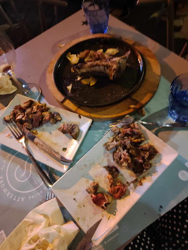 Unfortunately when the meat arrived, it was a huge disappointment. Sinew and gristle were the predominant features with precious little lean meat. At the first opportunity we brought our dissatisfaction to the attention of our server who switched from pleasant to passive aggressive upon receipt of our views. When we insisted in our opinions, she summoned a colleague who we understood to be a manager. This gentleman kindly went to great lengths to explain the technical niceties of Spanish cuts of this type even calling my dining partner into the cooking area for an inspection. He was, however, unwilling to countenance the fact that the meat was badly cooked and largely inedible. We both have eaten Chuleton at a variety of restaurants throughout the Iberian peninsula over the years and this was a lamentably poor example of same. Reference the photo below for the sheer quantity of inedible residue that remained upon our plates at the conclusion of our meal.