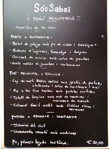 Fijaos si era poco profesional la camarera, que el menú era cantado ( no tenían carta escrita) y le pedimos si podía alzar un poco la voz ya que desde la otra punta de la mesa ( en vez de ponerse a la mitad se puso en una punta) no se la oía, su respuesta fué que la carta estaba colgada fuera en la calle y que fueramos a verla.... con dos "..", en aquel momento teníamos que habernos ido. Para muestra un botón, adjunto fotografía de la carta.