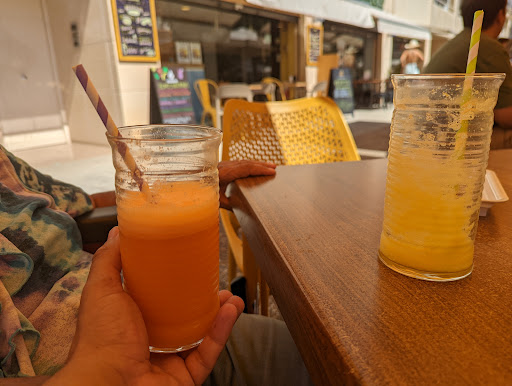Read moreCafetería situada en una plaza y con terraza exterior; en nuestro caso decidimos probar los zumos naturales: uno de naranja-limón-manzana y otro de naranja-zanahoria. La elección fue por el intenso calor del día y nos apetecía refrescarnos de forma sana.