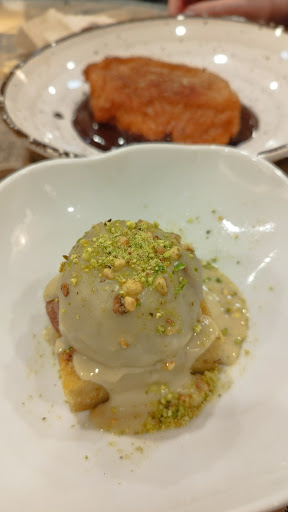Cada plato parecía elaborado con mimo y técnica. Hemos pedido unos primeros para compartir y un plato principal. El postre, un brownie de pistacho con helado de Nutella, otra inmejorable experiencia para los sentidos.