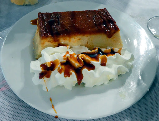 Al llegar los otros platos, el cocido cumplía con lo solicitado, pero la lubina estaba frita, o al menos hecha con una cantidad de aceite mayor que cuando se hace a la plancha. Cuando se lo indicamos a la camarera esta me ofreció el cambiarla por otra que si fuese a la plancha, pero luego me dijo que no tenía. Así que la alternativa fueron unos bistec a la plancha, que no entrecot ya que no soy una buena comedora de carnes, por lo tanto me gusta bien hecha la carne. Y así fueron, dos filetes de carne ya que no eran muy grandes, sin ningún tipo de acompañamiento. Esta vez si eran a la plancha. De postre pedimos tarta de queso para compartir, la cual estaba muy buena