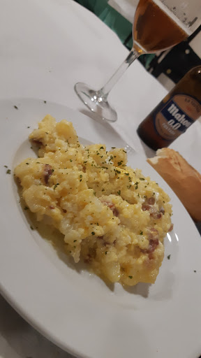 Restaurante situado en centro de Villafranca de los caballeros, muy cerca de la plaza de España, muy recomendable para cenar y comer o para alguna celebración ya que también disponen de un comedor bastante grande. El ambiente no deja de ser de un típico restaurante con lo que tampoco hemos de destacar nada en ese punto, el trato al cliente muy bueno y la rapidez del servicio y la calidad de la comida y presentación de esta también son bastante buenos. La carta es extensa y cuenta con servicio a domicilio sin recargo adicional y bastante rápido las veces que lo hemos utilizado. En el menú disponemos de pizzas, baguettes, hamburguesas, sandwich, raciones, bombas, durum y platos combinados de más elaboración. Los precios de los platos oscilan entre los 5 y 10 € y son elaborados de forma casera y con ingredientes de calidad como hemos podido comprobar, la única pega que yo pondría sería el uso de las patatas paja en vez de unas patatas fritas caseras y tradicionales que llamarían más la atención. También es un bar que destaca por sus cañas y vinos y su doble aperitivo por bebida, haciendo especial mención a las grandes pelotillas caseras...
