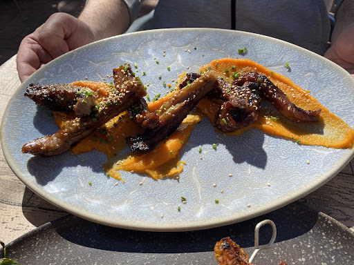 Volvimos de viaje y por un desvío en el camino dimos con Villalgordo del Júcar, y buscando, encontramos el Torreón, y que acierto. El sitio es muy bonito, en un parque junto al Río Júcar y para poner la guinda, hacia un día espectacular. Disfrutamos de una comida tranquila y con un buen servicio. Pedimos pulpo con una salsa de ajo negro que estaba muy rico. De plató fuerte unas brochetas de solomillo y tocino muy ricas. Y unas tiras de cerdo teriyaki con una base de puré de boniato buenísimo!!! De postre un clásico, bola de helado de turrón, muy rica por cierto. Y para terminar y bajar un poco la comida, un paseo junto al río. Muy recomendable la parada. Y sobre todo si vas con niños, ya que el restaurante esta dentro...