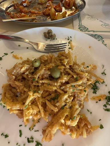 Family that owns place were super welcoming and they gave their best to give us all explanations of the food. We had bacalhau a bras, steak, fish, patatas bravas, and some nice pasta starter with fish. Vibe is like you are in a family restaurant and food tastes great, meat was so delicious, we had a great Portugal wine too. All in all we recommend it, price is more than affordable, they even offered gratis patatas bravas as we never tried ones before. We went out of the restaurant full, satisfied and with a warm feeling in your heart...
