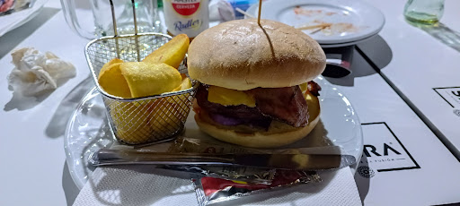 Lo que realmente me sorprendió fue la respuesta del propietario a mi mujer cuando pidió la cuenta. En lugar de ofrecer disculpas por la demora y la falta de servicio, se dedicó a defenderse diciéndonos, que ya nos avisó que iba a tardar un poco más ( a nosotros NO) y que si no veíamos que estaba la terraza llena (como si eso fuera una justificación suficiente como para que estés esperando 2 HORAS), y que como la cena estaba a punto de comenzar hacerla casualmente después de 2 HORAS (como si hubiéramos sido nosotros los culpables del retraso), que por lo tanto nos iba a cobrar las hamburguesas que habíamos pedido.