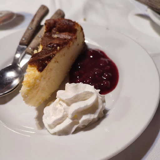 La carta es amplia y, todo lo que probamos, estaba delicioso. En concreto, probamos el revuelto marinero, el bacalao gratinado con queso payoyo, media ración de queso payoyo curado y medallones de cerdo en salsa. Para terminar, probamos la tarta de queso payoyo. Todo estaba espectacularmente bueno.