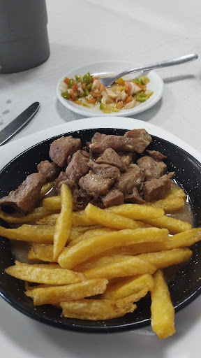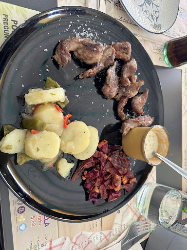 Empezamos con una sopa de picadillo que nos reconfortó desde la primera cucharada. Después, nos dejamos sorprender por la carne con tomate, que estaba buenísima. El lagarto ibérico con salsa de almendras fue un verdadero acierto, tierno y con una salsa deliciosa. El solomillo con salsa de pimienta no se quedó atrás, ¡muy sabroso y en su punto justo. Y los chocos fritos acompañados de una ensalada fresca que fue el toque perfecto para equilibrar tanto sabor.