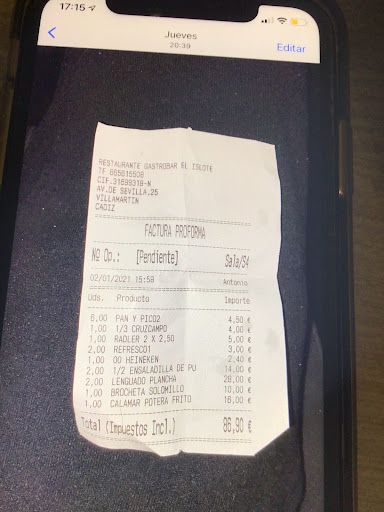 DE VERGÜENZA: Nos hicieron cambiar de sitio cuando ya estábamos sentado y con la bebida en la mesa (Falta de organización) Dijimos nos ponemos en la de al lado y nos dijeron que no porque estaba reservada... al tiempo me di cuenta de que a otra mesa no le dijeron lo mismo le dijo que eran 6 y esa mesa era de 8 que perdería dinero a pesar de no respetar las medidas de seguridad. Cuando nos atendió el dueño Antonio nos dice que pidamos para que no se acumulen las comandas y al tomar nota da la mesa de atrás le dice todo lo contrario tranquilo sin prisa... Vamos que iba a sacarnos el dinero claramente. Al venir la comida que pedí una ración de calamar potera frito porque media de calamar potera frito me dijo que no se podía era un calamar de unos 10 centímetros y de ancho unos 3 centímetros vamos como decimos aquí en Andalucía te lo comes de un bocado, sin patatas sólo ese pequeño calamar y cuando me dice como voy de lo comento y me dice ahora te traigo unas patatas fritas que aún las estoy esperando. Pedimos también carrillada dijo que se estaba haciendo pero que tardaba tras una hora nos dice que era mentira que no se estaba haciendo que no hay increíble vamos. Íbamos 6 personas pero comieron 3 , a los clientes si tiene algún fallo siempre les dice lo mismo, lo siento es que la camarera es nueva cuando lleva bastante tiempo allí porque soy de Villamartín. Al pagar mi padre me doy cuenta de que me cobran 16 euros por el calamar sólo y en carta pone 14 euros 4 euros por un tercio 2,5 por una radler que no era ni de marca. No tengo foto del calamar pero si el tikects para que NO timen a la gente como nos timaron a nosotros. No le dije nada sobre los precios porque no merece la pena protestar por unos euros pero el ya a perdido una familia...