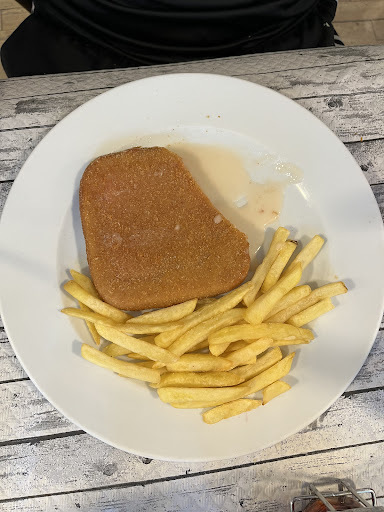 Read moreCasi vacio y servicio y comida malísima. Fui allí solo porque 'El bar estrella' el otro lado de la calle ha cerrado. Solo había 3 o 4 mesas a las 15.00 y por lo menos 5 camareros/as. Después de ser atendido por un chico alto y con cara de muy pocos amigos y un actitud no exactamente llena de ánimo, esperé la comida después de conducir más de 6 horas de francia y tener hambre. Solo pedimos tapas, un chorizo y 4 trozos de morcilla como dijeron que bocadillos calientes no hicieron!! Todo fue recalentado en el micro y cuando corté el chorizo fue pura carne cruda por dentro, absolutamente sin cocinar por dentro, pero frito por fuera. Se tomó casi 7 o 8 minutos para atraer la atención de unos de los múltiples camareros/as para simplemente cocinar el chorizo en el microondas. Entonces, con el pan presentado con las tapas, mi hijo hizo un bocadillo..que aparentemente ellos no podrían hacer. Al salir note un perro estilo danes en el centro del restaurante con sus dueños comiendo. No debe ser permitido. No...