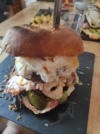Read moreNo tienen servicio de mesas en la terraza, lo q hace q si quieres cenar o comer tengas q hacerlo dentro o sacarte todo fuera tu mismo. La comida está muy rica y elaborada. Comimos un día ensaladas y lasaña de carne y boletus, migas todo muy rico, los postres, tarta de queso, crepes de chocolate y crema de chocolate blanco con arándanos, muy ricos y elaborados también. Otro día cenamos hamburguesas, crepes de jamón y queso y migas. Pedimos unas cervezas y solo tenían de grifo, con el calor q esta haciendo se hubiese agradecido q la jarra estuviese helada pq tomamos la cerveza más bien caliente. Revisad la cuenta pq entendemos q por el lío de gente q habia nos...