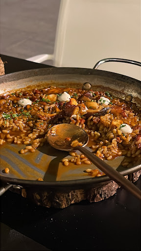 9️⃣ “Cochinillo en su jugo con arroz ibérico” un plazo. Sabor natural de la carne con un crujiente en su cobertura. Todo ello sobre un fondo de la propia carne y un arroz que estaba en su punto. Nos pareció un plato muy 🔝. Además, también tenía un crujiente en forma de flor que nuevamente aportaba ese toque crujiente y que tanto me gusta.