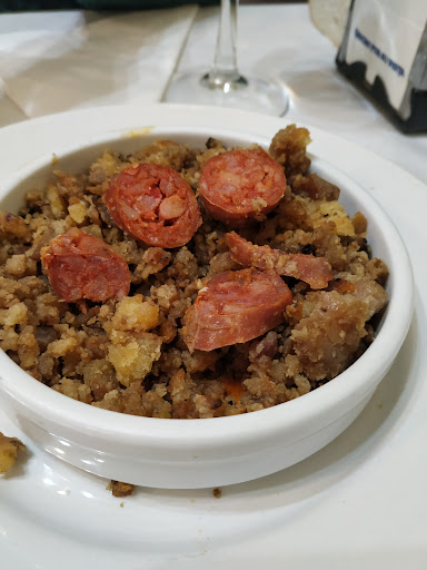 Un despropósito. El menú del día en domingo 15 € (aunque en la puerta tenían anunciado también otro de 10 y con la confusión... Acabamos dentro). De primer plato un platito de migas de los que se ponen de tapa. De los 5 primeros que ofrecían en la Carta 2 no los tenían disponibles, de segundo ofrecían como pescado del día calamares congelados o boquerones... Preferimos la carne, claro. La caldereta estaba buena. Los postres escasos y muy poco elaborados. Una torrija recalentada y super grasienta. Total, un sablazo y mal comidos. Por ese precio y menos, hay mejores sitios en el pueblo, y...