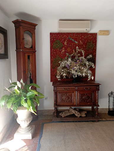 Es un lugar bellísimo, con todo lujo de detalles y que merece las pena ver. Sorprende llegar y ver el salón vacío, ya que los precios (menú 13€) y el menú o la carta, según su web están bien. El problema es que hoy hemos ido a comer y solo nos han ofrecido gazpacho, ensalada o gulas con huevo (las gulas y las gambas resecas) de primero y hamburguesa (nos han puesto solo la carne de burguer sin pan, y unas patatas fritas congeladas), presa (de sabor estaba bien, pero acompaña de patatas fritas congeladas) y merluza de segundo, de postre melón, sandía, mus de higo (riquísimo) y helado. Según nos ha dicho la camarera han estado de vacaciones y no tienen más cosas que ofrecer, aunque a otra pareja que ha llegado después les han dicho que ya solo les quedaba esto . Anteriormente habíamos visto que el menú incluía vino y casera y hemos tenido que preguntar e insistir para que nos lo pusieran en lugar de ofrecerlo directamente. Cuando hemos pedido la cuenta no tenían para darnos el cambio y han tenido que pedir cambio en la mesa de al lado. Todo un despropósito. Hemos intentado reservar para cenar (según su web solo dan cenas bajo reserva) pero nos han dicho que no. En fin, la información que aparece en la web no es real. Tiene tb unos patios exteriores muy bonitos que están desaprovechados. Yo recomendaría preguntar que ofrecen ese día, antes de ir a comer para no llevarse sorpresas. Adjunto fotos. Una pena que lugares como este no prosperen por una mala gestión. Me encantaría que el dueño de este sitio leyese esta opinión y pudiese ver el gran problema que tiene y pudiese resolverlo para que el negocio funcionase, de verdad que es...