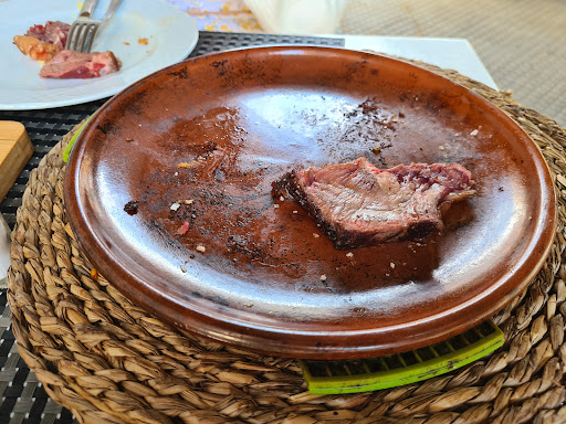 Tenía un recuerdo muy bueno de este sitio, pero hoy ya no puedo decir lo mismo. Me han dado la peor mesa de la terraza, y he terminado al sol. No me quejo porque sabía que estaba lleno, pero cuando me he ido, otra mesa permanecía vacía y a la sombra. He pedido un chuletón que ha resultado ser de calidad media, acorde a su precio tal vez. Lo traen fileteado y con un plato caliente. Sé por experiencia que estos platos se enfrían rápidamente, sobre todo si como éste son muy finos. Y que si el servicio no está atento a ello o directamente no pasa a supervisar el tema, el tercer trozo de carne ya no se hace correctamente. Y eso es lo que ha pasado en este sitio. El plato se enfría, no me apetece entrar a pedir que me lo cambien, y cuando viene el camarero ya es tarde, ha pasado demasiado tiempo. He pedido la carne para llevar, y en eso no ha habido problema. La ensalada de bolsa, no pasa nada, pero podrían advertirlo, porque lleva varios tipos de hoja y lechugas y no a todo el mundo le gustan. Sinceramente, la calificación en Google, altísima, en mi opinión no está acorde con...