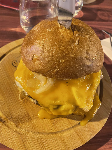 Read moreTeníamos muchas ganas de ir a este restaurante porque habíamos oído bastantes cosas buenas, y sinceramente nos llevamos una decepción. En primer lugar el local es bastante ruidoso (seguramente no ayudase que hubiese alguna que otra cena de amigos de Navidad). El servicio fue muy atento y amigable (en algunos momentos incluso igual demasiado cachondeo por parte de algún camarero, pero entiendo que eso haga gracia a mucha gente). La comida es donde no me acabó de convencer. Las hamburguesas se desmoronan en tus manos, especialmente si te pides alguna con salsa, y tienen una predilección extraña por el pimiento, cuando no es necesariamente algo que vaya bien con las hamburguesas. La carne a mi me pareció decente (aunque por menos precio me han servido mejor ternera en otros sitios) pero algunas personas de nuestro grupo pidieron la Angus y no les pareció que la calidad fuese tan buena. También tuvimos un incidente en el que pusieron mermelada de pimiento en lugar de de tomate en un bocadillo y una persona de nuestro grupo es alérgica al pimiento, menos mal que lo olió antes de comérselo. Cuando lo comentamos le cambiaron el pan (lo cual fue suficiente porque no es una alergia severa) pero no le pusieron la mermelada de tomate que es la que tenía que venir con el bocadillo. A ese punto ya no nos valió la pena reclamar más porque a ese paso nos habríamos acabado el resto la cena antes de que...