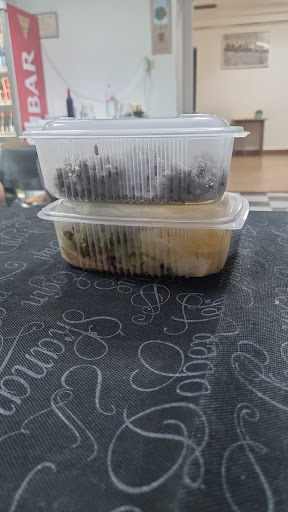 La primera señal de peligro fue cuando le pedimos la carta al camarero y el tipo directamente nos empezó a cantar el menú. Resulta que por un plato compartido y un segundo por persona cobran 25 eurazos de vellón. Por ello insistimos en que nos trajeran la carta, y bueno, el bocata de longaniza que me empujé por seis euros no estaba mal, pero en la foto podéis ver lo que cuesta el "plato combinado" que pidieron los dos colegas que salieron de aquí con más cara de tonto que los demás, y lo que les pusieron.
