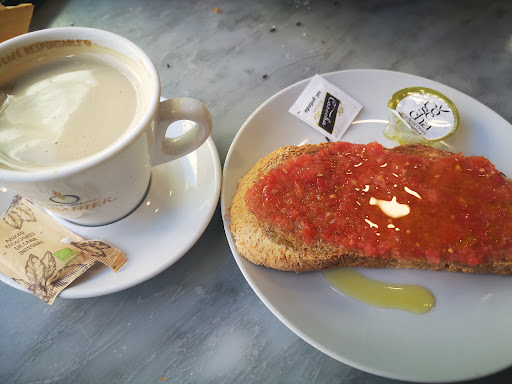 Read moreUn poco abarrotado como siempre, y el servicio es lo que es, tipo self service. Además no aconsejo las tostadas porque las hacen con pan del día anterior, con lo que no están para nada sabrosas. Para ir a por pan o pastas, siempre que estén recién hechas bien, pero para tomar ahí algo hay sitios mejores y más agradables.