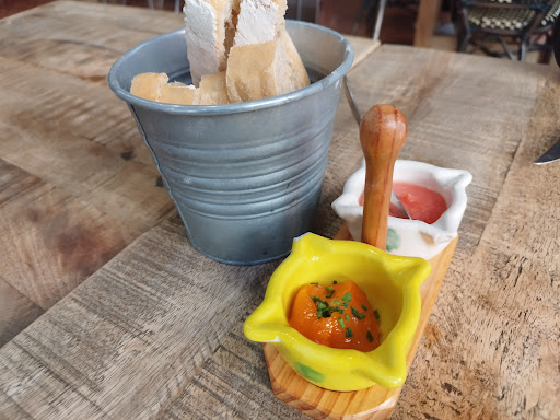 Read moreAmbiente agradable, decoración cuidada y buena atención. Los precios por plato y menú son altos pero las cantidades no son escasas, y baja la cuenta el que las bebidas sean más baratas de lo normal (botella de agua a 1€ es un precio notablemente bueno teniendo en cuenta el tipo de sitio que es, así como el del refresco, que cuesta 1,5€). También ayuda que no te cobren cubierto o el pan y el alioli/tomate, cosa por la que normalmente te clavan de norma a partir de 1,5€ (a veces por persona).